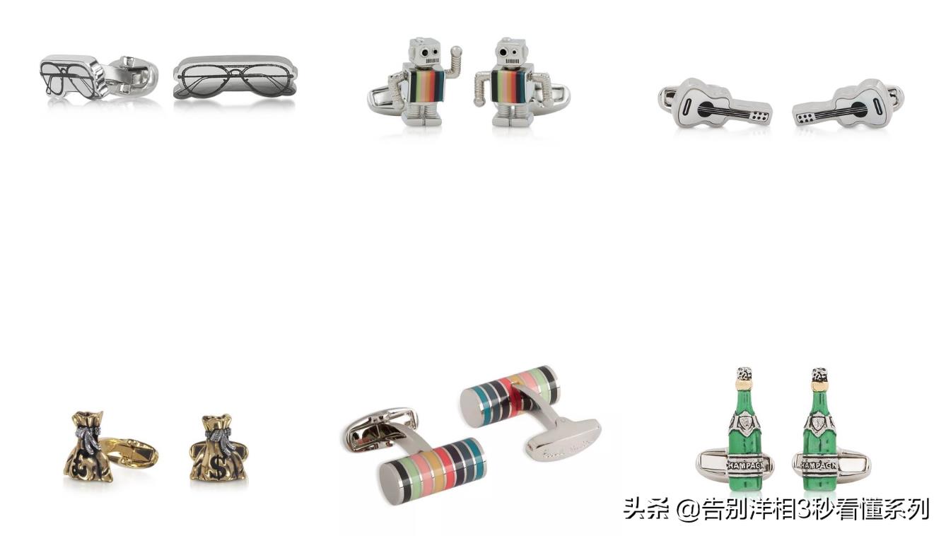 一般有一个规律:水晶玻璃袖扣因其透明,最好搭配白色衬衫;而红色衬衫搭配金色袖扣,有华丽和时髦的感觉;黑、白、灰衬衫搭配银色袖扣,则有沉稳、高贵的效果。