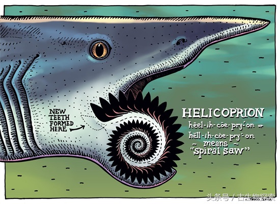 当距今2.5亿年前二叠纪结束时,一场空前的大灭绝爆发,导致了海洋中80%的物种消失,其中就包括了旋齿鲨。如果不是今天保存在岩石中的奇特牙齿化石被发现,我们绝对想不到鲨鱼家族中还有这么一种奇葩的物种存在。