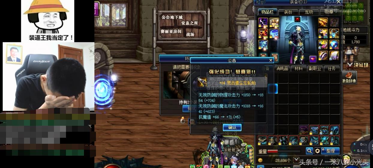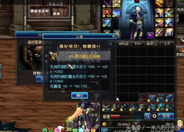 魔神的增幅15短剑,剑魂的增幅15荒古光剑,武神,武极的强化15荒古拳套。