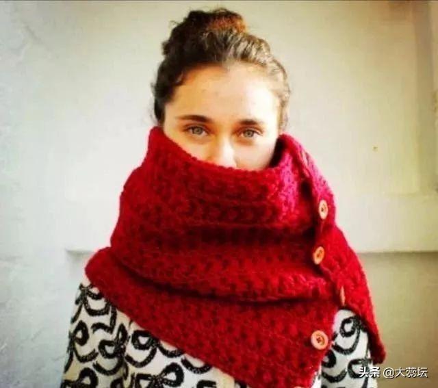 围脖不仅有保暖功能,还有很好的装饰效果。冬季的服装,有些款式略显单调,色彩也不够靓丽,如果搭配一条漂亮的围脖,往往能起到画龙点睛的装饰作用。如上图所示,大红色的手工编织的围脖,让黑白花纹的外套一下就活泼靓丽起来了,看着有一种暖暖的感觉。