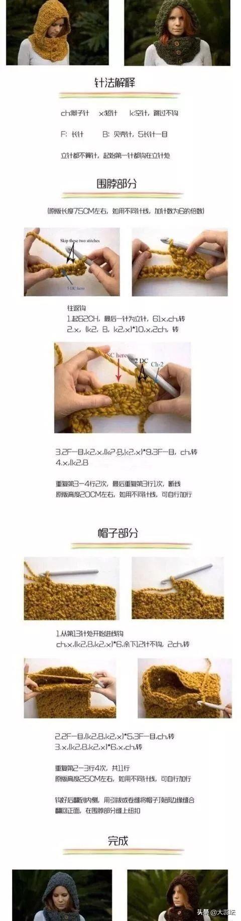 20款毛线围脖,手工编织,连帽围脖有教程。