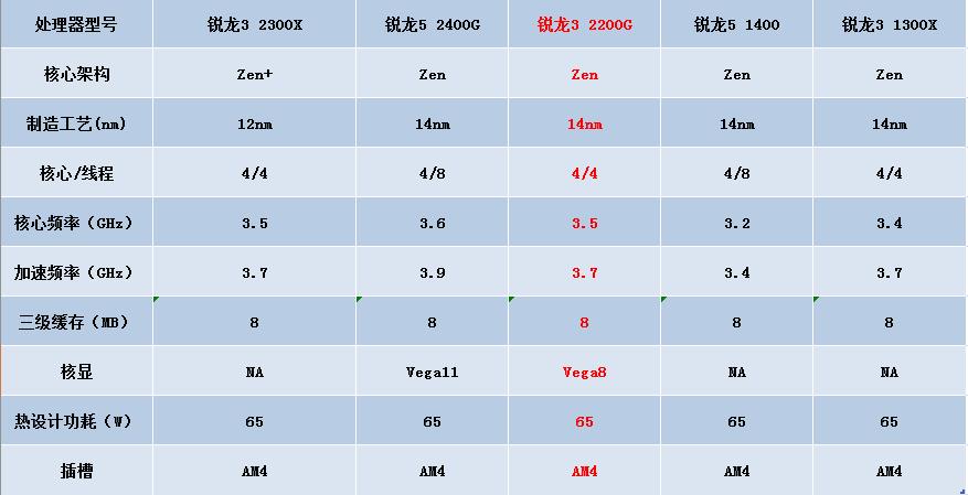 Ryzen 3 2200G采用的是14nm的制造工艺,拥有4核心4线程,主频频率3.5GHz,最高可达3.7GHz。核显核心为RadeonVega 8,最高频率为1100MHz,并且可以超频,同时TDP只有65W,性能已经接近GTX1030的水准了。
