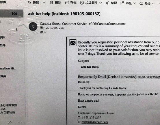 对此,该网友表示不服,又托朋友从加拿大买了同款浅色的羽绒服回来,又拍了同样的照片发给加拿大鹅官方邮箱,没想到这次得到的回应是该衣服为正品。