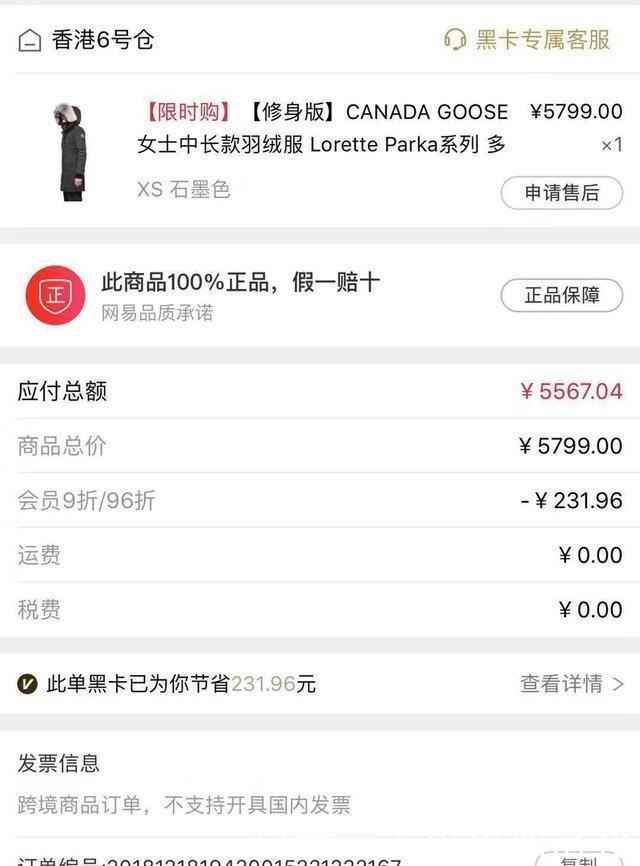 最终结经由网易考拉内部和Canada Goose官方双重鉴定,确认平台所售为正品。
