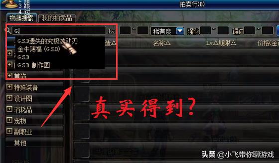 首先就是大家可以去拍卖行搜一搜这把,GSD的究极波动刃,是会弹出来这把武器的,这就证明系统里是有这把武器的,毫无疑问,买肯定是买不到的了!