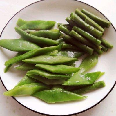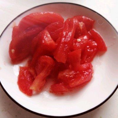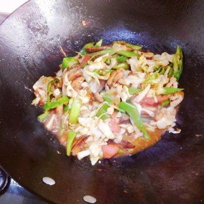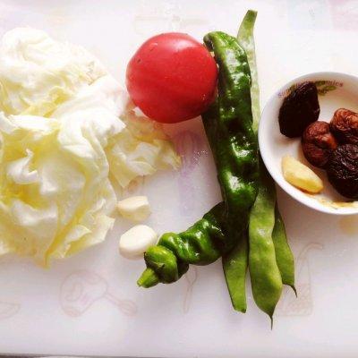 13、依次下入豆角,莲花白,香菇丝,西红柿,青椒,炒至断生。