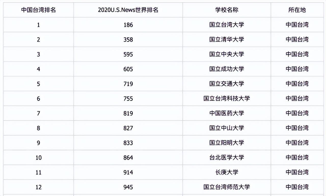 目前台湾省共有十几所左右的大学进入过U.S.News世界排名前1000名以内(大陆进入1000名以内大学有90+所,台湾进入U.S世界排名前1000以内的大学能占到我国全国的十分之一,其高等教育水平自然是比较强的。