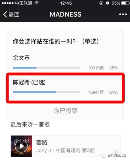这还没完,最后还发起了投票,问大家:你会选择站在谁的一对?结果就hin尴尬了。。。