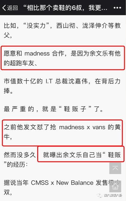 还有传的很多的“鞋贩子事件”,之前他发文怼了抢madness x vans 的黄牛,然而没多久,就曝出余文乐自己当“ 鞋贩 ”的经历:据说当年 CMSS x New Balance 发售极少双,余文乐的CMSS雇了一批东南亚人,发售时扫光了货“ 炒鞋 ”。