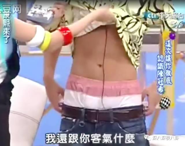 最后,S还不忘“吃豆腐”环节,当场撩陈冠希的衣服,然后就有了这一幕。。。这裤子都快要掉下来了吧(咦~害羞)