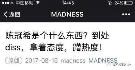 还有这出戏,因为被陈冠希diss后,MADNESS的公众号就发了这种文章搞事情。。。