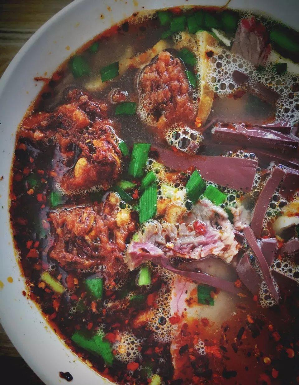 牛肉都是提前煮好切片的,五香味深深地浸入到了牛肉里面,口感很棒;大条牛血,大块牛肉,至醇汤味,扑鼻而来~这种诱惑对吃货来说是无法抵抗的!