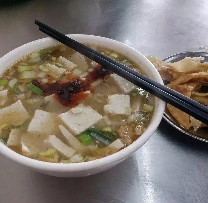 满满一碗白豆腐夹着一些切成小块的油豆腐,根据自己需求再加上一勺姜汁和油泼辣子,翻动间豆腐的香味和油香就窜了出来,赶紧喝上一口,豆香四溢,汤汁鲜美,豆腐软嫩如布丁,让我有一种得豆腐者得天下的感jio!