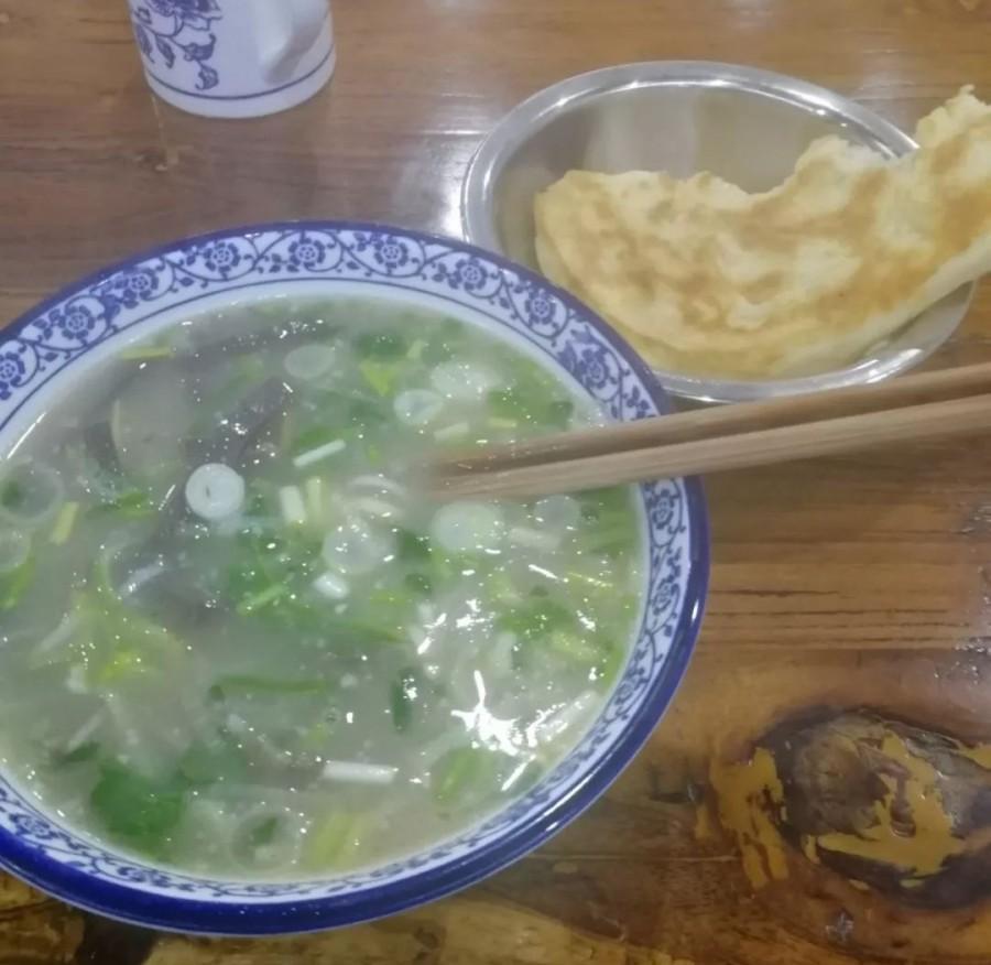 单是站在汤店门口,看着那飘出的阵阵白烟,顿时就有股暖流涌上了心头。碗底铺上葱花、香菜,选好的驴肉、驴血等在热汤里过一下。随着一勺热汤浇下,鲜香的滋味就迸发了出来。