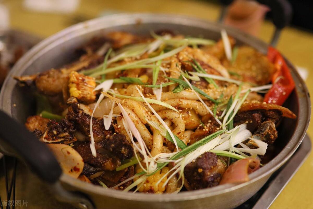 炕锅羊排:是西宁独特的美食,只有在西宁才能品尝到。将煮熟的羊排剁成小块,加上洋葱、大蒜、生姜、红尖椒等食材,煸炒至五分熟,再加入青红椒和土豆炒熟,麻辣香嫩入味。