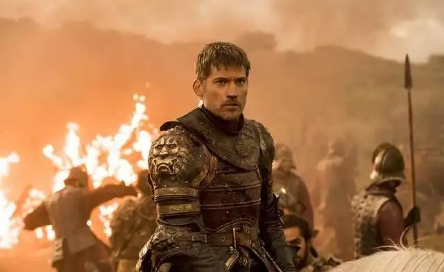 目睹龙焰威力和士兵惨状,詹姆像一个孤胆英雄般骑马带上长矛想要杀了龙母结束战争,差点死在龙焰下,让远处观战的提利昂为这个愚蠢的哥哥捏了把汗。