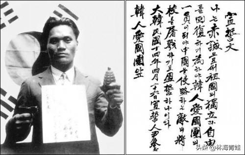 时年24岁的尹奉吉是1930年流亡到中国的,先后到过东北和青岛,1931年来到上海后与金九相识,尹奉吉通晓日语且意志坚定,在金九的游说下,同意接受刺杀任务,并在进行刺杀行动的前三天,宣誓加入了“朝鲜人爱国团”,金九为其准备的是2枚烈性手雷,被巧妙地安放在日本军用水壶内和日本便当(饭盒)内。