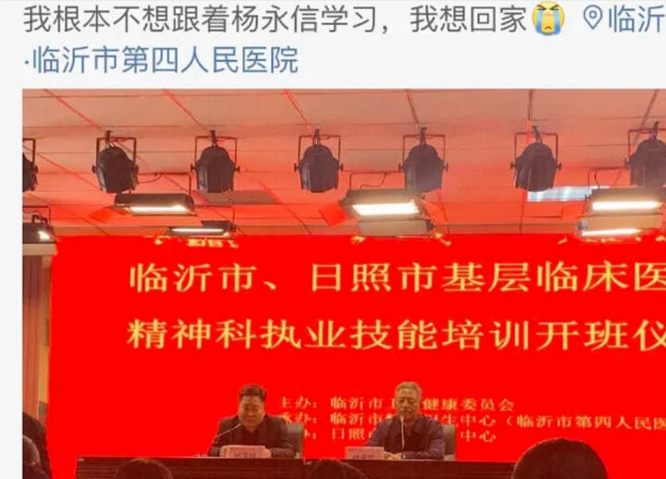 网上有人爆料,杨永信近期以临沂市第四人民医院副院长的身份,出席参加了临沂市精神卫生中心大会、精神科培训开班仪式。