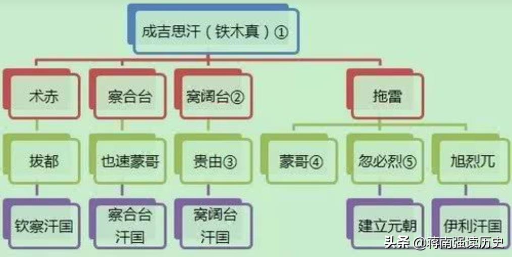有朋友经常会问忽必烈是成吉思汗的什么人,答案很简单,忽必烈是成吉思汗的孙子。