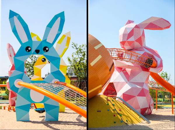 由景区正门主入口进入后右转,来到了马卡龙色系的兔窝窝,小孩和大人都能玩得不亦乐乎!