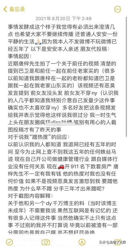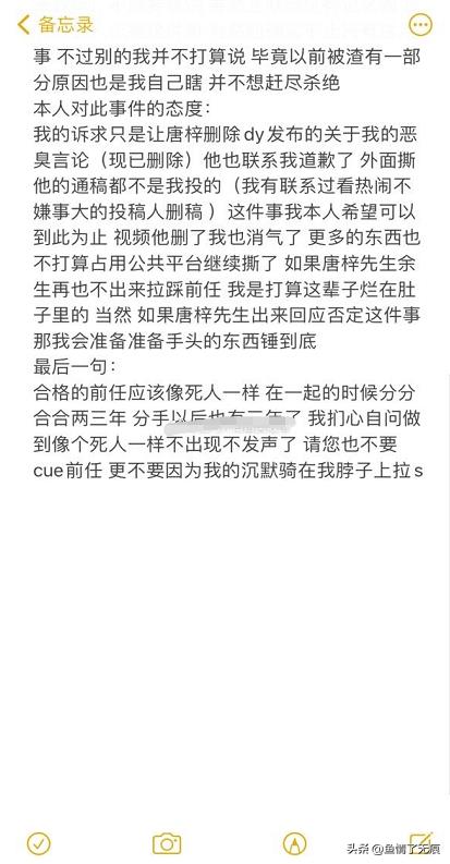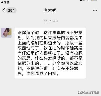 大概就是唐梓表明态度,而视频内容是由编剧写的,他没认真审查,没有拉踩,什么头发啊啥的,都不是依据前女友出的。