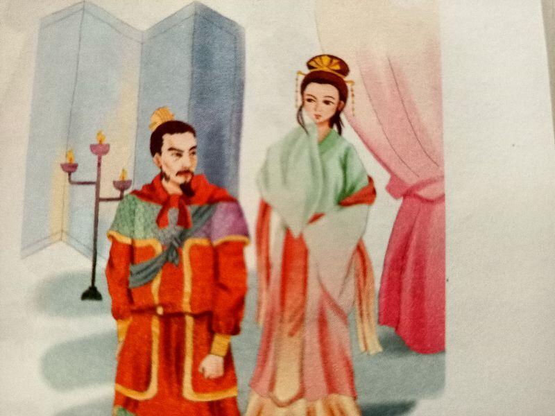 这天清早,舜正在整理行装,娥皇提着一袋干粮走进来,她拉着舜的手,依依不舍地说:“大王,您一定要去吗?”