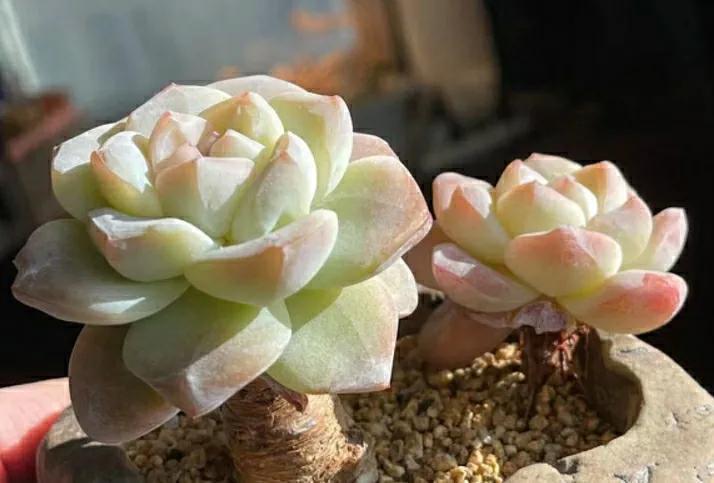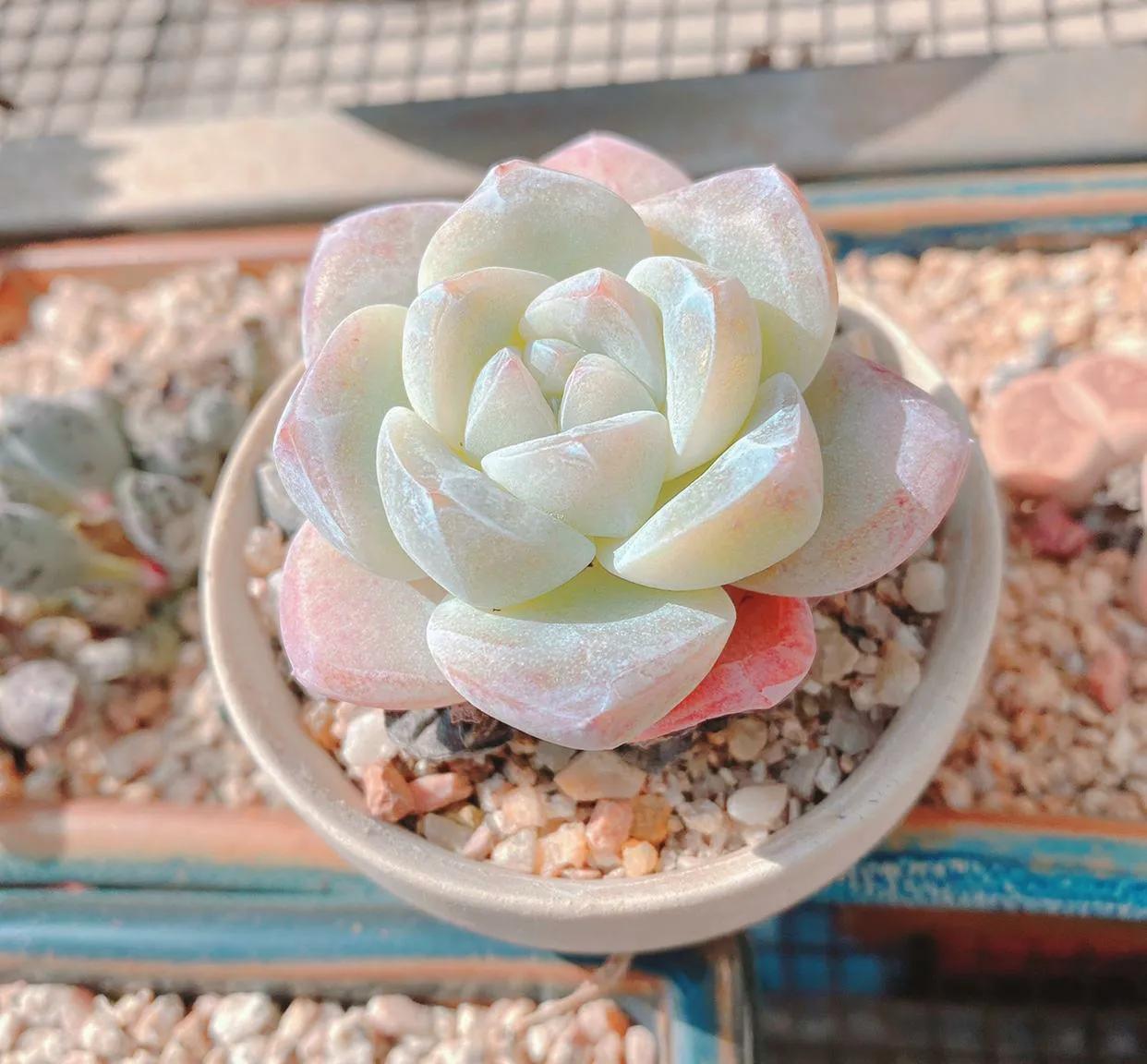 2、冰玉的状态除了取决于光照以外,其实还和温差有着密不可分的关系。不要长时间把冰玉放在恒温环境中,要能够给予一定的温差刺激,这样更利于叶片上色,这一点很多花友都不知道。