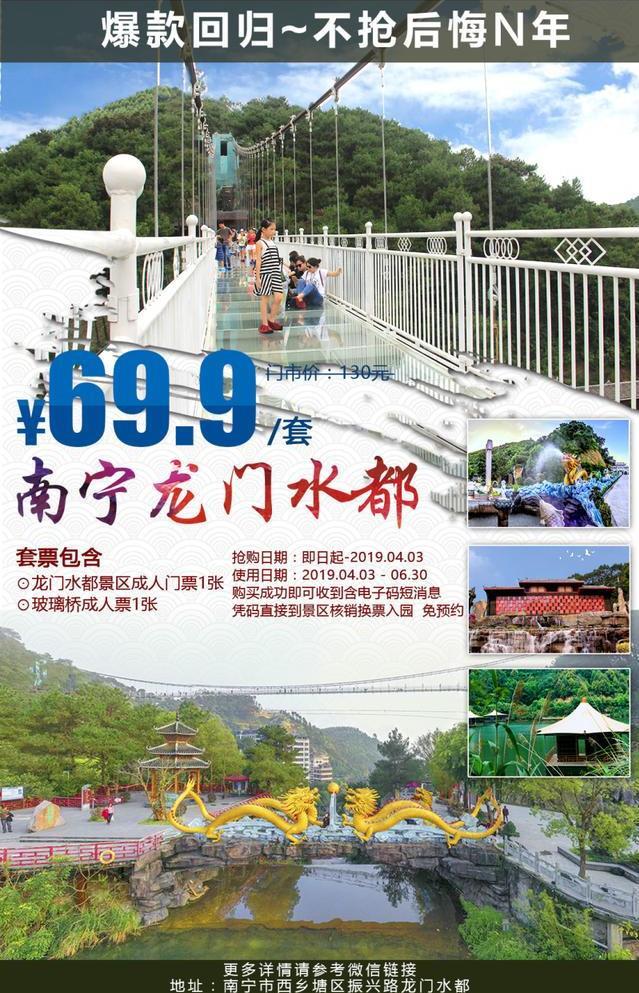 玻璃桥门票1张+龙门水都门票1张