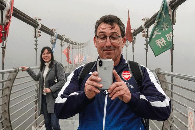 行走在玻璃桥上,桥身会有摇晃感