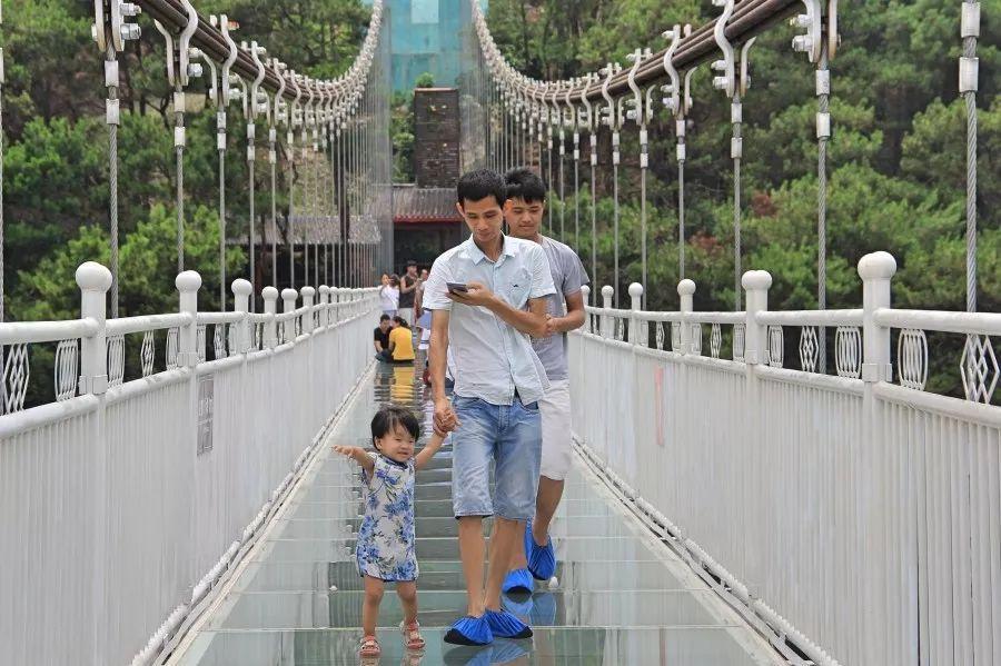 说着天高任我飞的小伙伴遇上玻璃桥