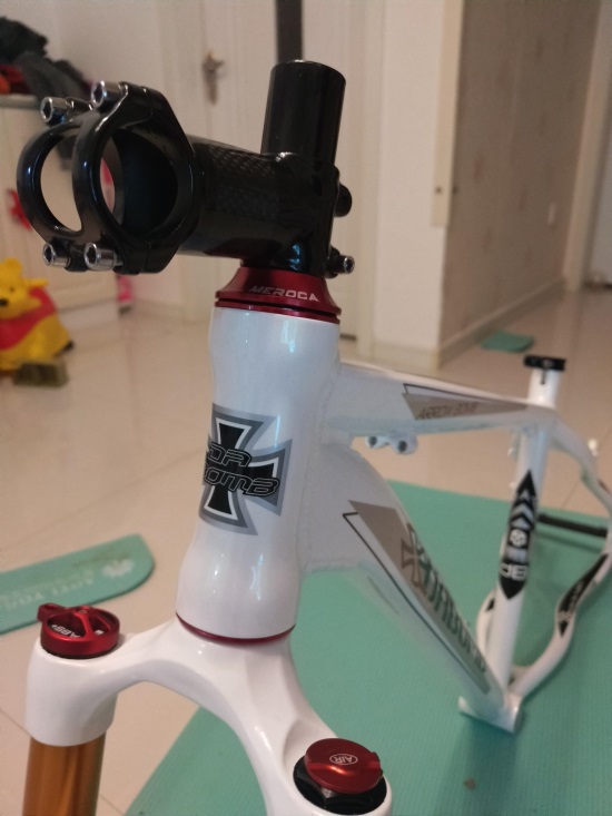 下面我们切入主题,前叉的安装。上几期我们已经将腕组砸入车架头管。所以我们需要把前叉抵挡套在前叉上。