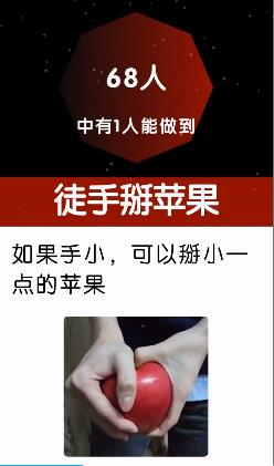 68人中有1人能做到,如果手小,可以掰小一点的苹果
