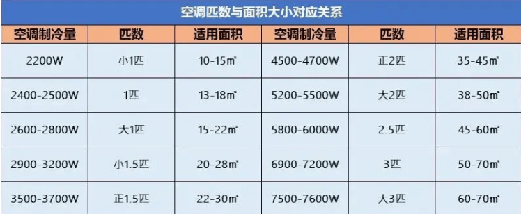 5.空调制冷量与房间面积不匹配