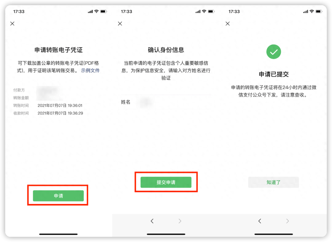 然后找到【全部账单】-【转账】,回忆一下大概的交易日期找到相对应的交易记录,点击【申请电子转账凭证】,之后点击申请输入对方真实姓名,最后提交申请就能得到这笔电子账单。