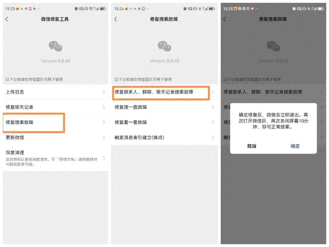 确定修复后,微信会退出。再次打开微信后,关闭屏幕10分钟,即可正常搜索。这样恢复的联系人,需手动添加但不需要对方验证。