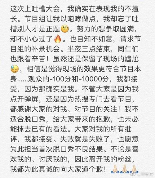 马景涛上《吐槽大会》被批尴尬没礼貌,发800字长文获网友原谅
