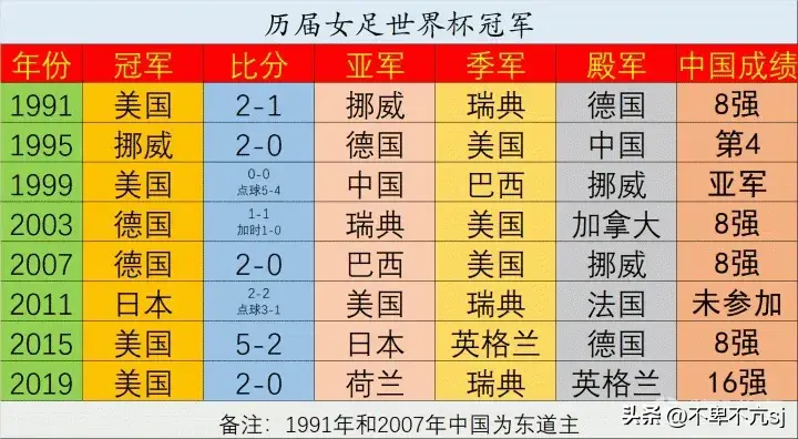 历届女足世界杯冠军及中国女足历史发展回顾