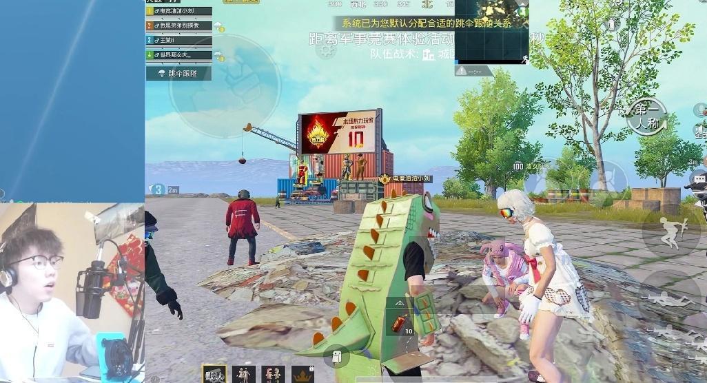 在进入游戏等待界面的时候,小刘最英俊穿着一件绿色的恐龙服装,高昂着头静静的出现在了空地上。而他的出现瞬间引起了众人的关注,众人纷纷跑到他的面前嬉闹,主要是因为这件绿色的恐龙服装太过稀有。