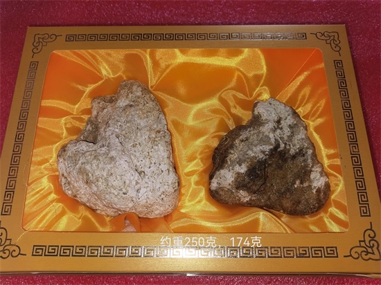 (左边重:368克褐色,发出果木土质清香味,右边重174克:发出皂角土质清香味)