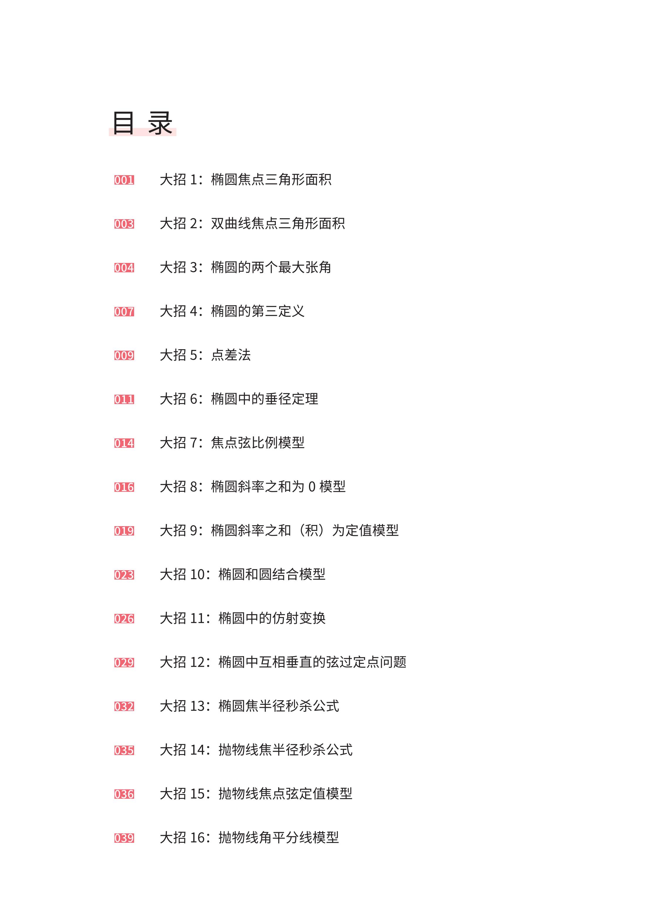 今天学长给大家分享的是《圆锥曲线二级结论应用手册》包含了:16个秒杀大招结论,以及例题解析等等!