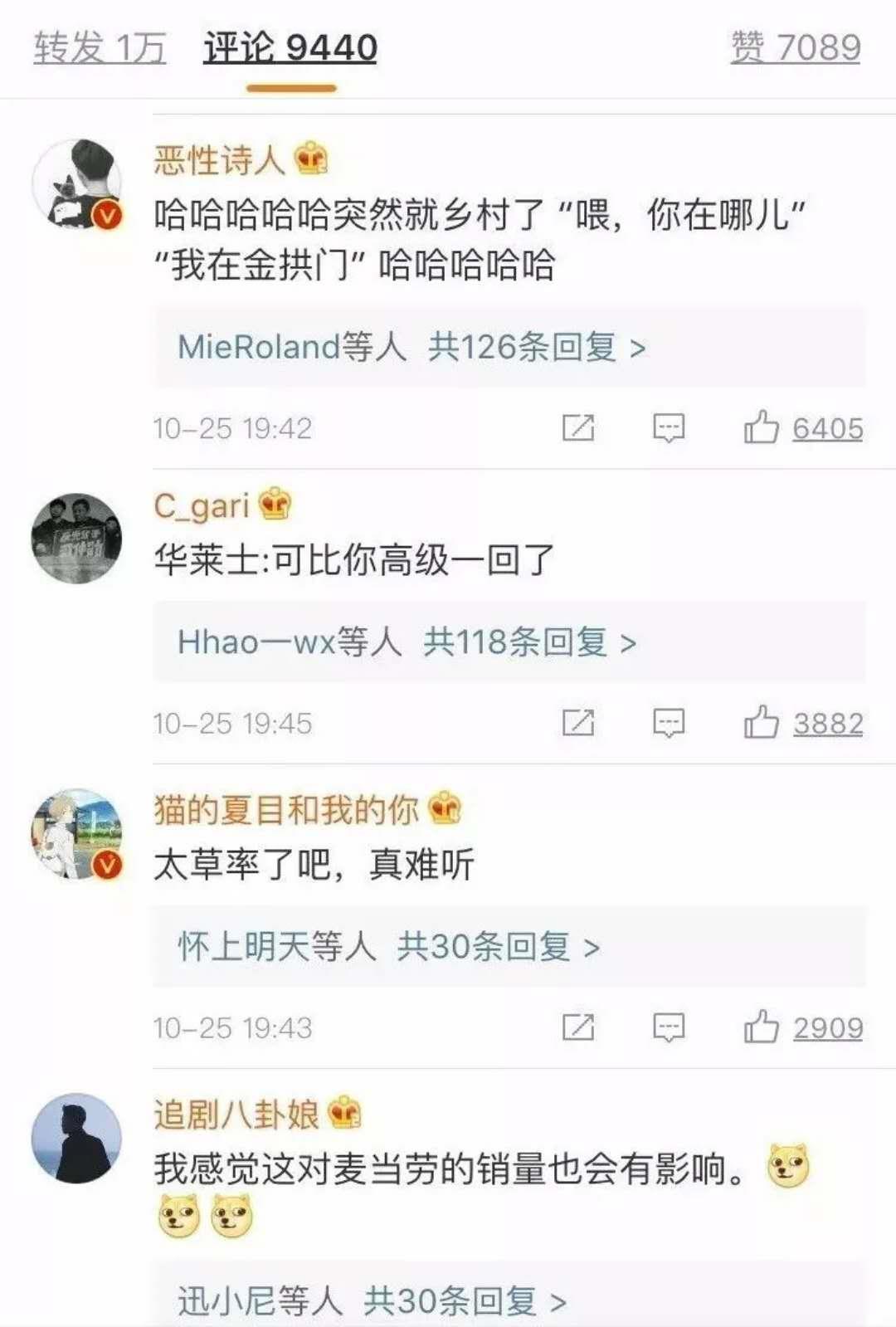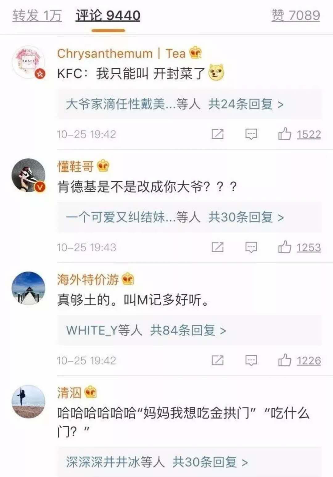 麦当劳眼红啊,但他们深知事件营销中的不可复制性,想着黑不成代言人,就黑自己吧。于是在10月13日正式更名为“金供门”。