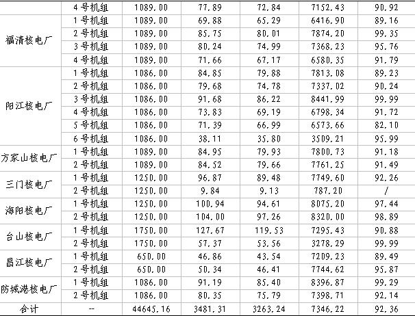 这47台机组发电情况如下图(数据来源:中国核能行业协会):