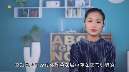 空鼓是由于原砌体和粉灰层中存在空气引起的,检测的时候,用空鼓锤或硬物轻敲抹灰层及找平层发出咚咚声为空鼓.房屋质量中的“空鼓”一般是指房屋的地面、墙面、顶棚装修层与结构层之间因粘贴、结合不牢实而出现的空鼓现象,俗称“两层皮”。