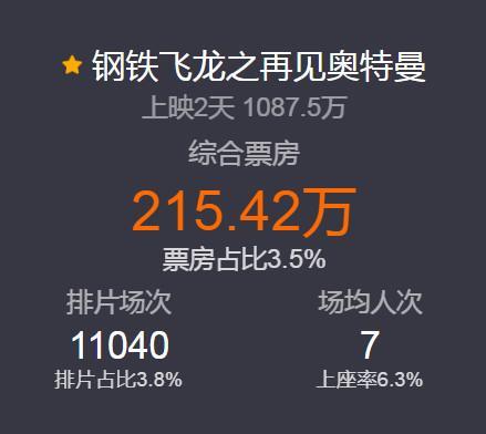 在今年的国庆档,内地电影市场有着非常多大片的登场,让观众们也在假期当中有了更多的选择。而此前就因为侵权疑云而引发风波的《钢铁飞龙之再见奥特曼》就是其中之一。那么目前为止,这部作品的表现如何呢?