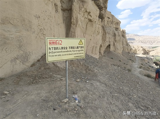 藏尸洞位于古格王朝遗址北面600米的山沟里,是王宫的最后遗迹。洞口距地面约2.5米,有个水泥台阶可以爬上去。旁边立一块牌子,写着“为了您的人身安全,不得进入藏尸洞内”。
