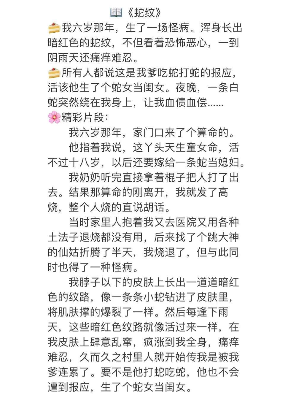 这期给大家推荐的是8本男主是蛇文,献给喜欢阅读的书友们!如果你也喜欢这类型的小说,还请多多点赞留言呀,每本都是高分精品!