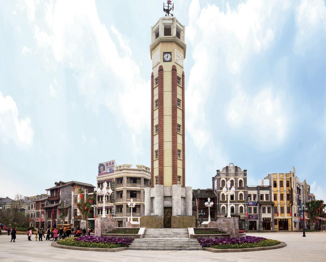 原型为上海亨达利钟表总店,旧址位于上海市南京路抛球场(今南京东路河南路口),因电影《一九四二》置景需要被列入两江国际影视城老建筑建设序列。2016年6月,按1∶0.8比例复建完成。亨达利钟表行创立于清同治三年(1864年),由法国人霍普在洋泾浜三茅阁桥(今上海市延安东路江西中路口)创办,以经营钟表为主营业务。