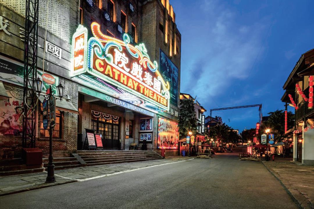 原型为抗战时期的国泰大戏院,原址位于渝中区柴家巷巷口(今邹容路),因为特殊的历史内涵被列入两江国际影视城老建筑建设序列。2012年8月,按1∶0.2比例复建完成。国泰大戏院修建于1937年,戏院地址原是四川士绅赵巨旭的私宅,由文化商人夏云瑚集资经营。戏院兼有影戏功能,以放映电影为主,是抗战时期陪都重庆最大的综合性影戏院。戏院外有霓虹灯构成的“国泰大戏院”5个大字;戏院内有座位1500个,皆为铁靠背椅,金丝绒弹簧坐垫;天花板上有6盏磨砂大吊灯,两边高墙各安4个排风扇。耗资14万银圆建成,其富丽堂皇居重庆众多戏院之首。取名“国泰”,寓有国泰民安之意。国泰大戏院曾上演近百出爱国和进步话剧及放映数百部电影,郭沫若、夏衍、阳翰笙、赵丹、金山、白杨、张瑞芳等都在这里留下身影,这是大后方进步文化活动的重要阵地,在我国戏剧、电影发展史上具有重要影响。