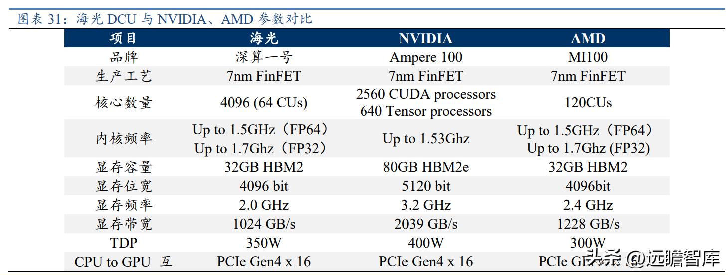 NVIDIA早早凭借强大的GPU+CUDA方案切入深度学习领域,用大笔研发投入和时间堆积起坚不可摧的生态城墙。英伟达、AMD等巨头在定制GPGPU时,只是删除了显示接口,留下图形部分;国产后进者在研发GPGPU时,则不仅去掉了GPU的显示功能,还去掉了图形渲染功能。差异化竞争下国产厂商迎来一次重要机遇。