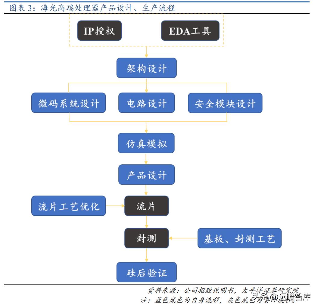 在其主要产品CPU、DCU芯片研发生产流程中,海光主要从事设计工作。